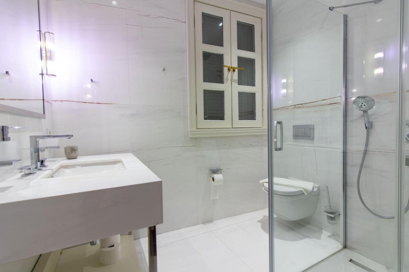 One-Bedroom Apartment. This air-conditioned apartment comprises 1 living room, 1 separate bedroom and 2 bathrooms with a shower. Guests can make meals in the kitchenette that comes with a stovetop, a refrigerator, kitchenware and a microwave. Featuring a terrace with city views, this apartment also provides a washing machine and a flat-screen TV. The unit offers 1 bed. ;